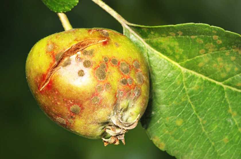 Парша — заболевание, поражающее плоды, побеги и листья растения. Заметить болезнь можно по наличию коричневых сухих пятен на листьях и плодах. Споры могут перезимовать в почве, на старых листьях и плодах, а также в трещинах коры дерева.