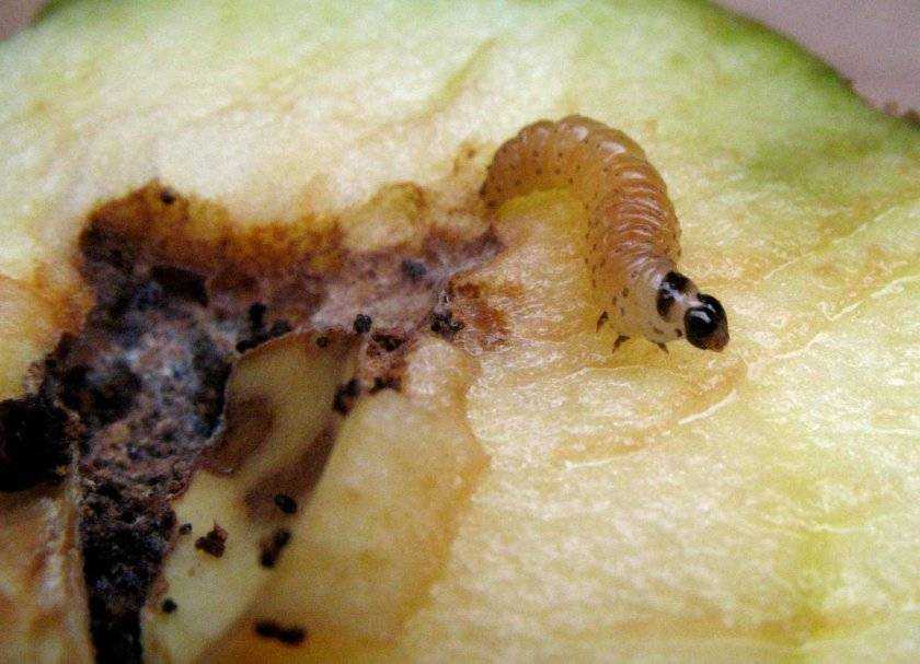 Основной вредитель любых яблонь — плодожорка. Бабочка яблоневой плодожорки закладывает яйца в завязи. Вылупившиеся личинки будут жить в растущих плодах. Одна гусеница в состоянии повредить не только то яблоко, в котором находится, но и переползти в другое.