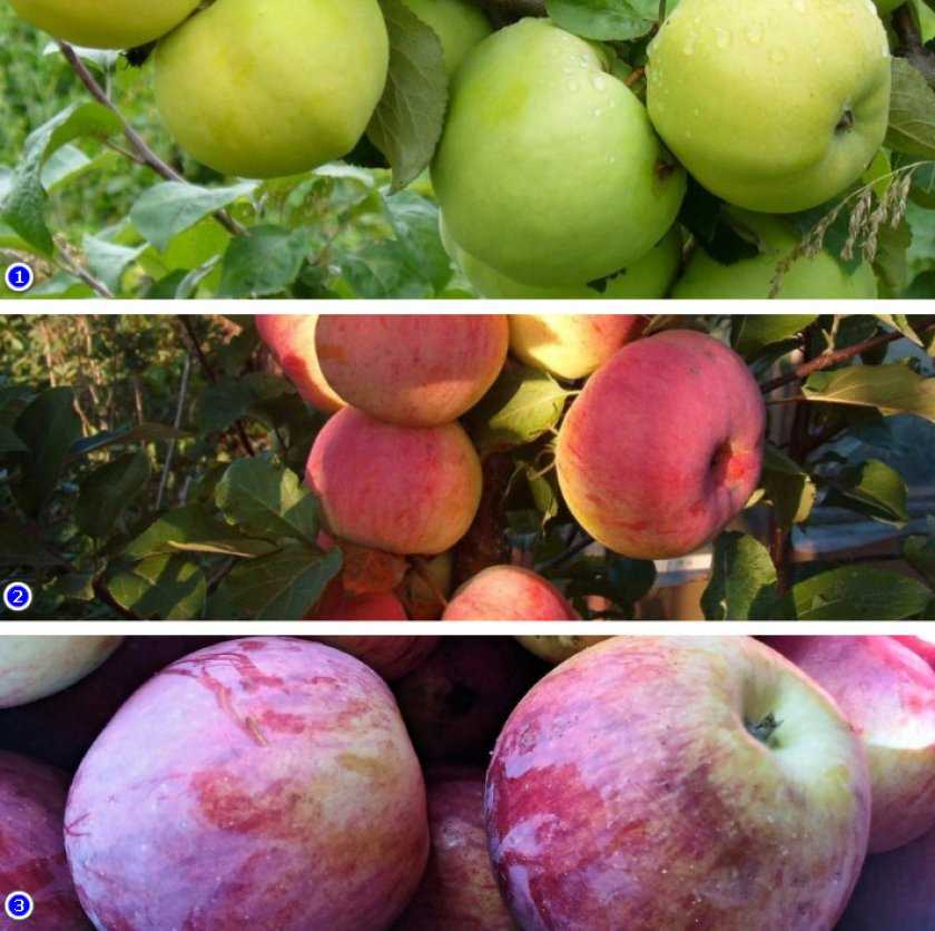 1 — сорт Антоновка; 2 — сорт Уэлси; 3 — сорт Память воину.
