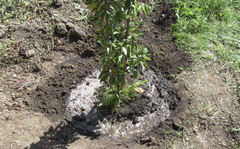 Поливать абрикосовое дерево нужно обильно, но редко. Если весна засушливая, в мае требуется один раз хорошо полить сад, потом во время налива плодов. Осенью, даже если кажется, что дождей достаточно, желательно провести влагозарядковый полив. Он обеспечит выживаемость дерева даже в суровую зиму, когда из-за морозов влага высыхает и дерево страдает не столько от холода, сколько от обезвоживания.