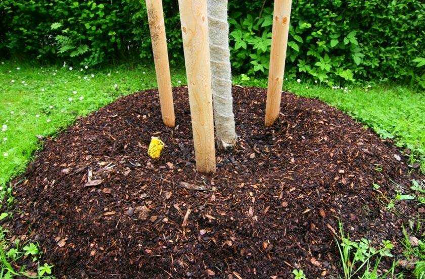 Мульчирование или поверхностное покрытие почвы мульчей для защиты растения и улучшения его плодородных качеств проводят в первые 2 года жизни саженца