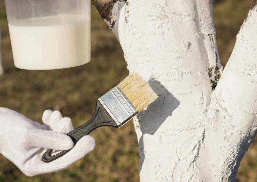 Побелка нужна для того, чтобы защитить растение от морозобоин, болезней, вредоносных насекомых. Для неё требуется специальная смесь, которую можно приобрести в магазине либо приготовить самостоятельно из гашеной извести, смешанной с коровяком.