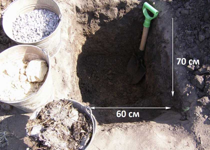 На участке выбирается освещенное место. Уровень подземных вод должен залегать на глубине не менее 2 м. Почва должна быть нейтральной, если она кислая, ее обрабатывают известью. Идеальный состав грунта: дерновая земля, плодородная огородная земля навоз, песок. Дно ямы выстилают дренажем, битым кирпичом и песком.