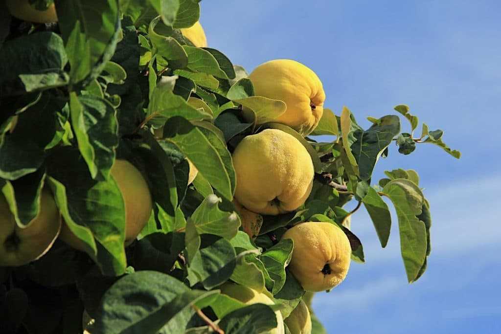 Первые плоды с айвы снимают, когда растение достигает возраста 4 лет. Урожай поспевает в сентябре – октябре, он отлично хранится до весны. Плоды похожи на желтовато-зеленоватые яблоки, несколько угловатой формы. Дикая айва мелкая, массой не более 50-70 г. Вес сортовых экземпляров достигает 250 г.