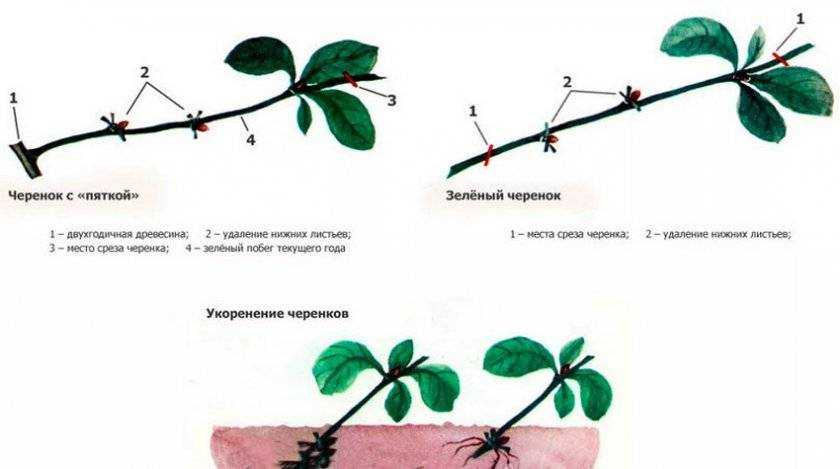 Можно использовать для размножения и одревесневшие черенки длиной 25 см, у которых нижний срез проходит сразу под почкой, но укоренять их в такую же песчано-торфяную смесь нужно в парнике.