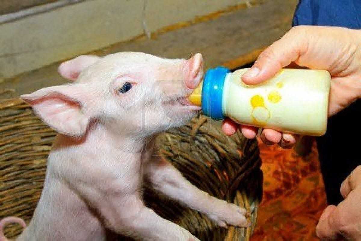 - С помощью молока, получаемого от свиноматки.