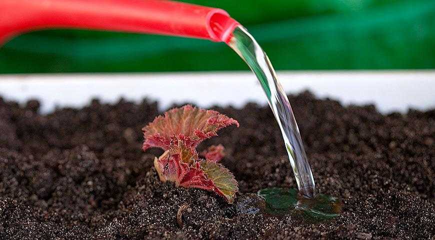 Бегония любит полив, для которого используется отстоянная вода. В летнее время практикуют частый полив, в жару – ежедневный, во время холодов полив уменьшают, не доводя лишь до пересыхания почвы. Клубневые виды, находящиеся зимой в состоянии покоя, в поливах не нуждаются.