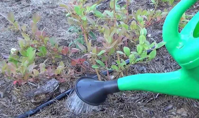 Все вересковые растения любят влагу. Не является исключением и голубика. Поэтому весной ее поливают раз в неделю. Летом, в засушливые периоды, количество поливов увеличивают до 2-3 раз в неделю. К осени, после сбора урожая, голубику вновь поливать нужно не чаще раза в неделю.