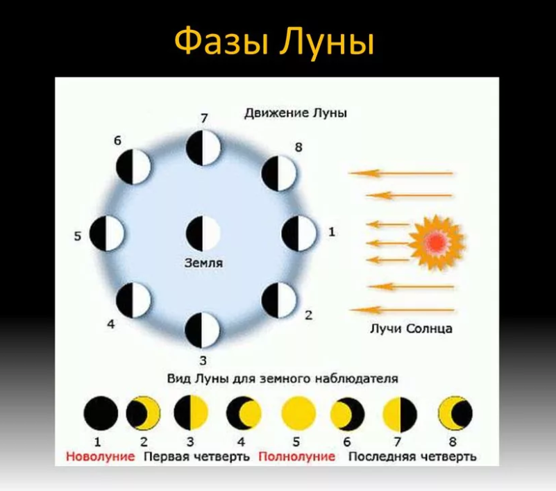 Существует четыре фазы Луны, которые сменяют друг друга по мере вращения вокруг Земли и в зависимости от положения Солнца. Существует: