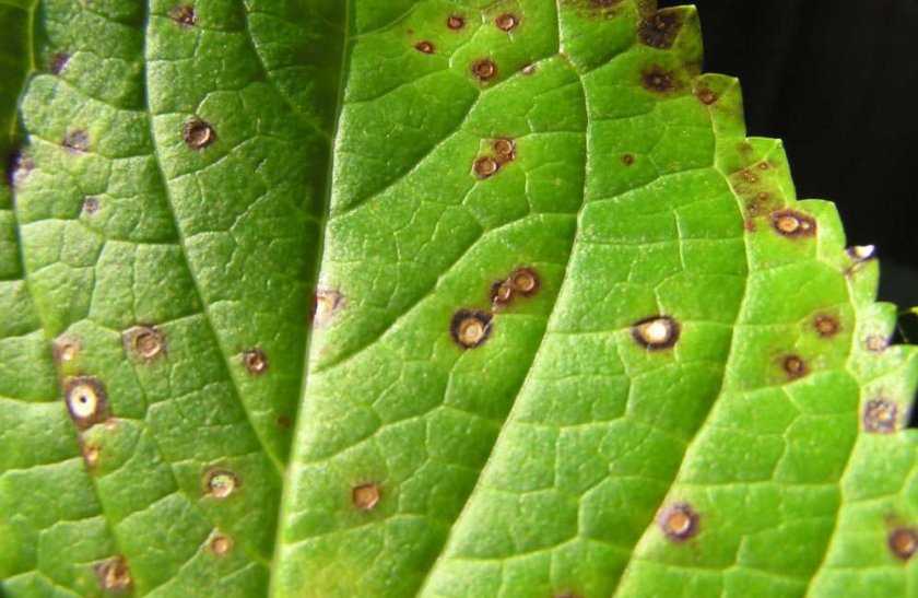 Причиной её возникновения могут стать лишняя влага, большая плотность посадки или запущенность кроны. Обнаруживается недуг в виде серого налёта на листьях, который со временем высыхает и высыпается, образуя на листовых пластинах дырки. Это опасная болезнь, которая очень быстро распространяется, особенно во влажной среде. Она может заразить другие растения сада или огорода, поэтому при сильном поражении кустарника им лучше пожертвовать, уничтожив его, чтобы спасти остальные культуры.
