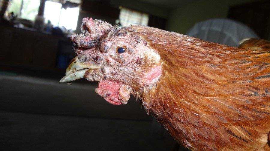 Патология типична для молодняка и цыплят. Проявляется заболевание в виде формирования на коже пятен – позднее они трансформируются в наросты – коричневого цвета. Основное место появления – голова и область клоаки. По мере ухудшения состояния наросты захватывают новые участки тела.
