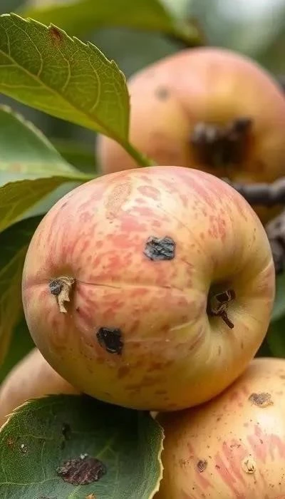 Другие визуальные признаки болезней плодовых деревьев включают опадение листьев, преждевременное опадание плодов, изменение цвета коры и появление наростов на ветвях.