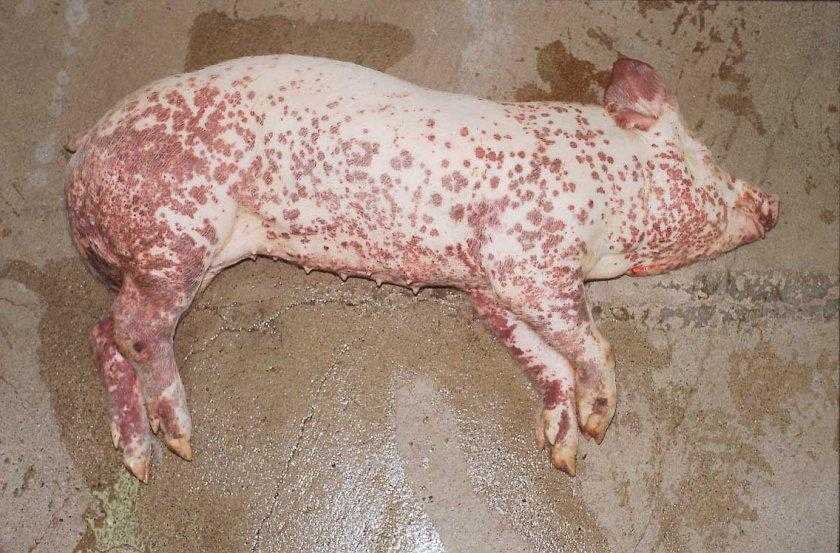 Если у свиньи крепкий иммунитет, развивается заболевание подострого течения, проявляющееся в виде крапивной лихорадки, проходящее спустя 10-12 дней. Подострая форма рожи характеризуется возникновением таких признаков: