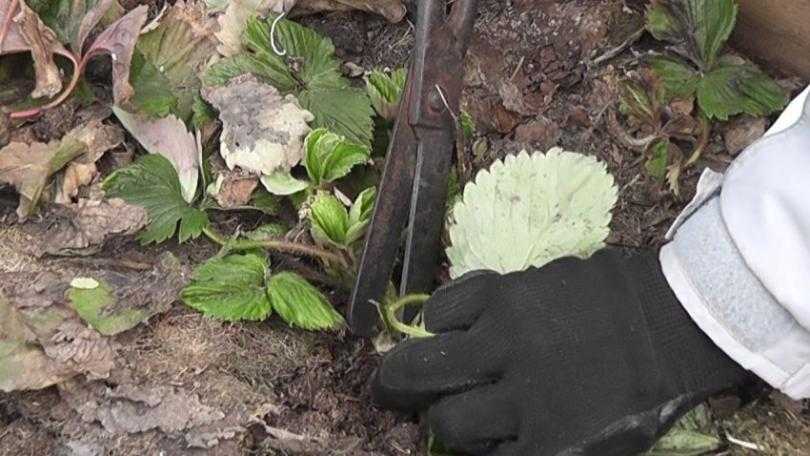 На данном этапе очень важно тщательно опрыскать клубничный участок, чтобы не дать вредителям возможности проснуться