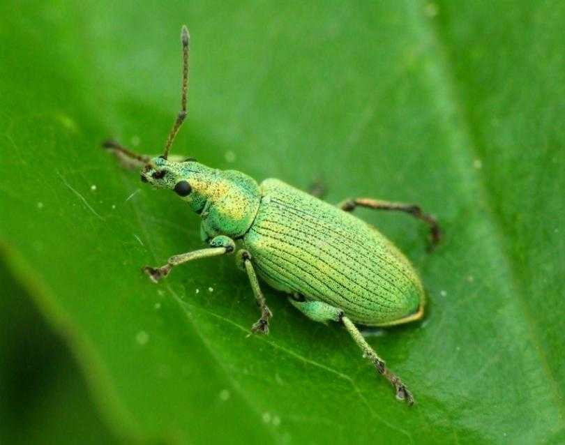 Отличительная черта у насекомых – наличие головотрубки, то есть вытянутой передней части головы, как хобот у слона. Российские жучки имеют жемчужно-серый, бурый или черный окрасы, благодаря чему они не заметны на растениях.