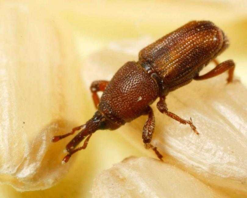 Амбарный долгоносик – небольшой темно-бурый жучок длиной около 4 мм с недоразвитыми крыльями. Это опасный вредитель зерновых культур. Причем археологами установлено, что занимается он своей разрушительной деятельностью издавна: в XX веке ученые обнаружили следы долгоносика в раскопках древнеегипетских захоронений, а в Древнем Риме насекомое было известно как вредитель под названием Curculio. Взрослое насекомое повреждает зерно и продукты из него, а личинки из яиц, которых самка за одну кладку может отложить до 300 штук, развиваются в зернах проса, пшеницы, риса (рисовый долгоносик), овса, ячменя, гречихи, ржи.