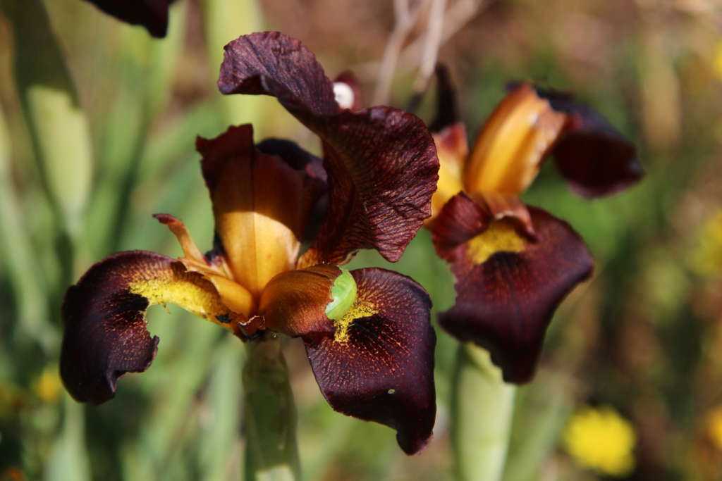 - Известные вредители поражающие ирис – это совки, которые выедают основание цветоносов, в результате чего они желтеют и погибают.