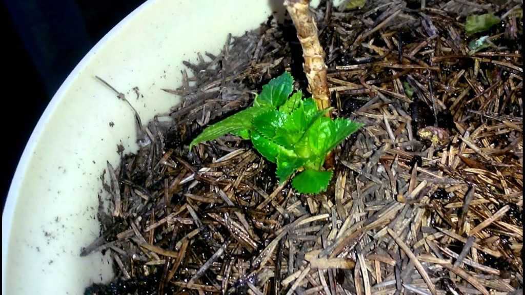 Черенок ставится в емкость с торфом и песком для наращивания корней.