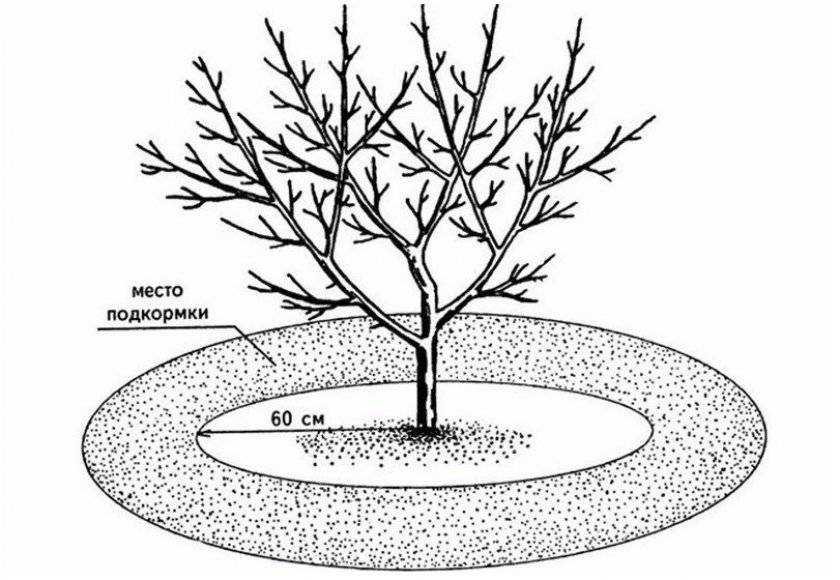 У взрослой черешни диаметр лунки должен составлять примерно метр