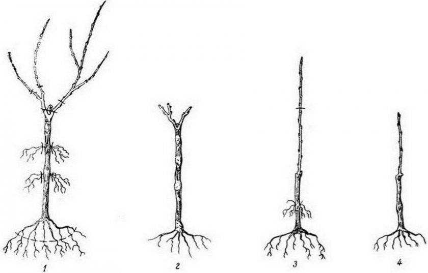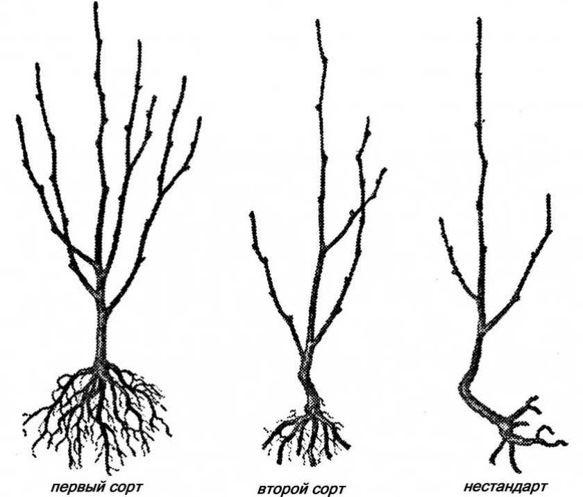 Ствол должен иметь диаметр примерно 1,5–1,6 см. У однолетних саженцев веток может не быть. У двухлетних экземпляров уже должны сформироваться несколько побегов.