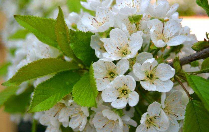 В это время на дереве появляются среднего размера, белые цветки с приятным ароматом. Россошанская Золотая является самобесплодной, поэтому для хорошего плодоношения ей потребуются доноры пыльцы. В качестве опылителей отлично подходят сорта вишен Ночка, Чудо-вишня или сорта черешни Овстуженка, Ленинградская, Галочка.
