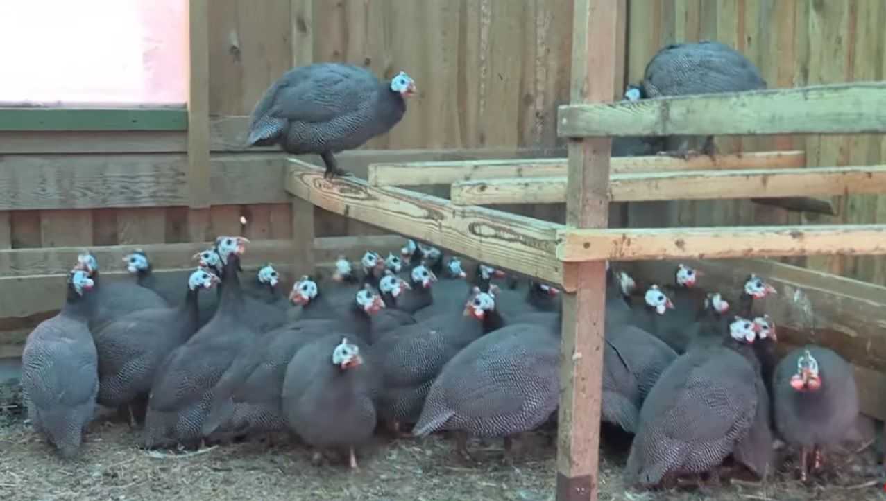 Предлагаем вам посмотреть видео ролик, чтобы увидеть, как выглядят цесарки. А также из него вы узнаете, как обустроить вольер, закрытый птичник, и каким должен быть лаз для выхода в выгульный двор:
