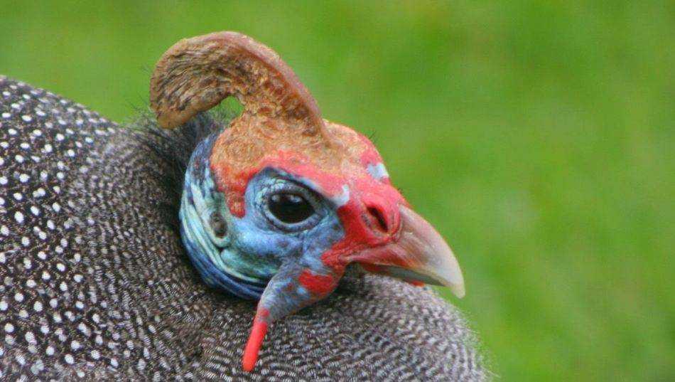 Несмотря на то, что выглядят цесарки практически одинаково, определить пол поможет форма клюва и положение головы.