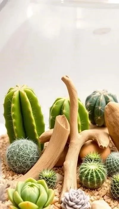 - Пустынные флорариумы: Имитируют пустынный ландшафт с использованием суккулентов, камней и песка.