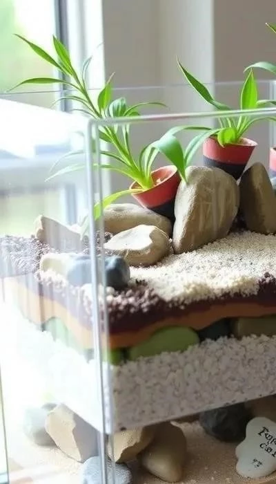 Шаг 2: Грунт и дренаж. Создайте дренажный слой из керамзита или гравия на дне контейнера. Затем добавьте слой специального грунта для палюдариумов, который обеспечит растениям необходимые питательные вещества. Разделите грунт на зоны для водных и наземных растений.
