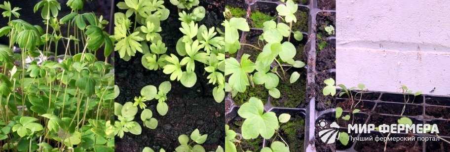 Спустя 10-15 дней появляются всходы. С этого момента немедленно снимают плёнку и регулярно увлажняют почву. Здоровые насыщенно-зелёные ростки с 2-3 листьями пикируют по отдельным горшочкам. Рассаду следует содержать при температуре до +20°C