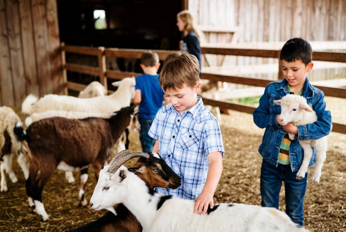 - Кормление животных под присмотром взрослых, когда дети самостоятельно угощают коз, овец, кроликов специально подготовленным кормом