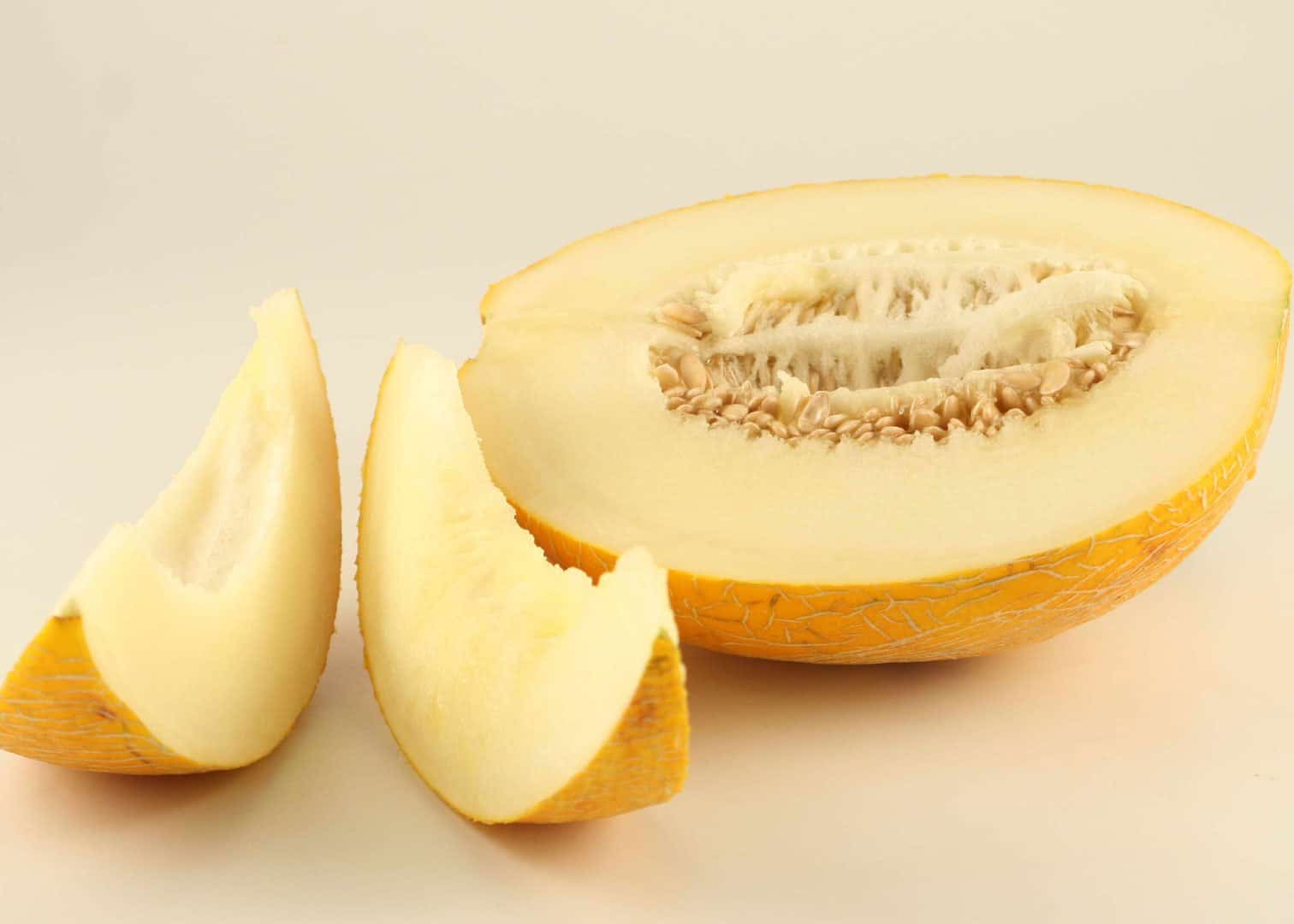 Средний вес дыни – 3 кг. Кожура толстая желтая шершавая с мелкой сеточкой на поверхности. Мякоть белая очень сочная медовая. Характерным отличием является визуальное разделение на дольки. Внешне она немного напоминает тыкву.