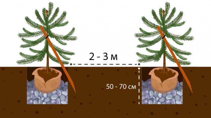 Важно! При посадке высокорослых деревьев, к которым относится и Ауреоспиката, всегда следует учитывать минимально допустимую дистанцию между соседями . Чтобы крона ели могла развиваться, расстояние между ней и другими посадками не должно быть меньшим, чем 3 м