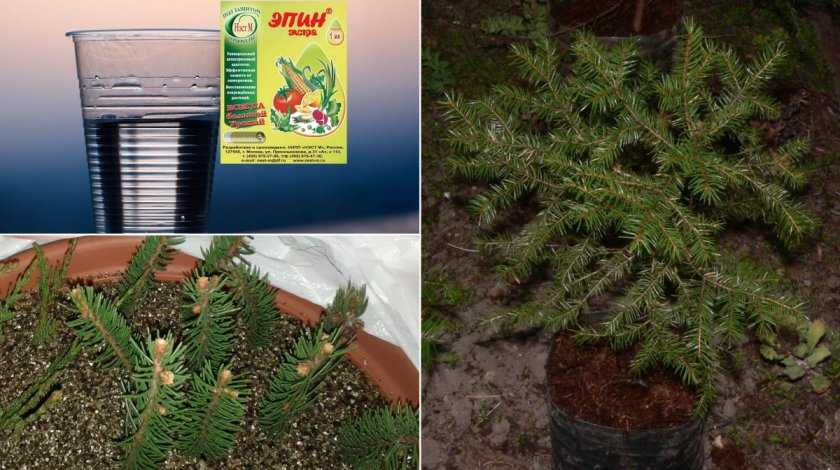 Чтобы размножить растения при помощи черенков, выбирают нижние сильные ветки. Их аккуратно срезают у самого основания ствола. Затем помещают в стакан с ускорителем роста. Можно для этого использовать Эпин . Разводят его по инструкции. В готовом растворе выдерживают черенок 12 часов. Затем сливают жидкость и наливают обычную воду.