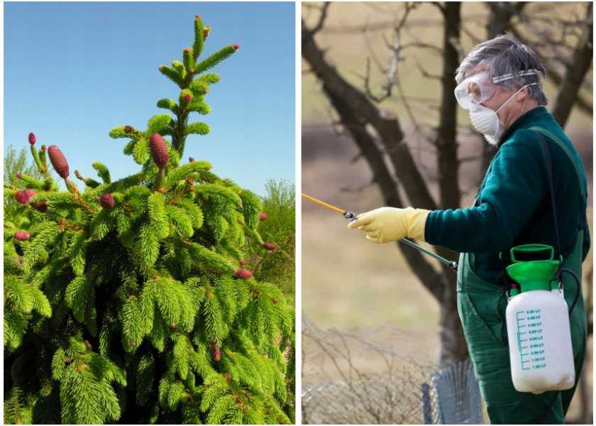 Самые опасные для ели вредители: паутинный клещ, галловая тля, листовертка и еловая тля. Против применяют инсектициды и акарициды (Актара, Конфидор, Фитоверм), которыми обрабатывают деревья несколько раз с интервалом 7 дней. Очень полезно для профилактики ранней весной опрыскать все ели бордосской жидкостью (1% раствор).