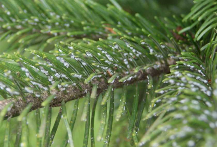 Елово-пихтовый хермес также часто поражает молодые растения. Это насекомое оставляет после себя галлы: в них начинает развиваться тля. Как только подобные новообразования были замечены, ветки срезают и сжигают, а дерево обрабатывают инсектицидами.