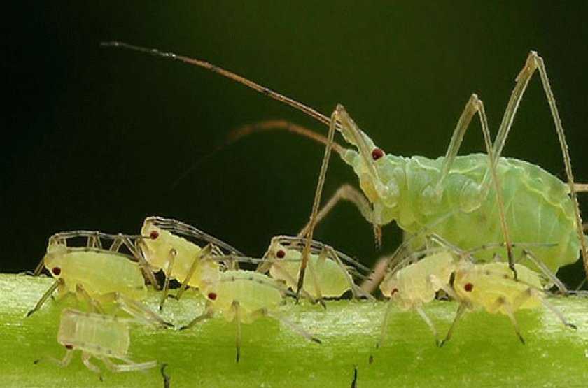 С помощью инсектицида можно избавиться и от зелёной тли. Она поражает практически всё дерево и высасывает из него соки.