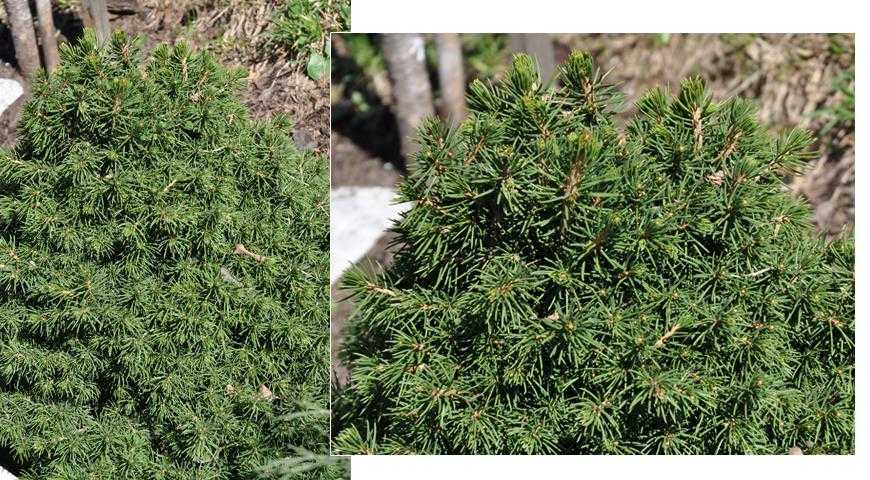 Очень медленно растущая плотная шаровидная форма с темно-зеленой хвоей. К 30 годам может достичь в высоту до 0,5 м, в ширину – до 0,7 м. В наших садах довольно редка.