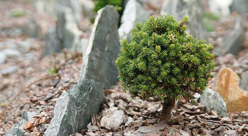Карликовые елочки очень эффектны в ландшафтных композициях, созданных по принципу контраста формы и цвета, в сочетании с другими низкорослыми хвойными и лиственными породами. Выведенные селекционерами миниатюрные сорта елей разнообразны и нарядны, они отличаются размерами, строением кроны (от конической и шаровидной до подушковидной, стелющейся, распростертой) и окраской хвои (различные оттенки зеленого, голубоватого, серебристого, стального цвета). Группы из миниатюрных хвойных могут украсить малый сад, каменистые горки, даже цветники.