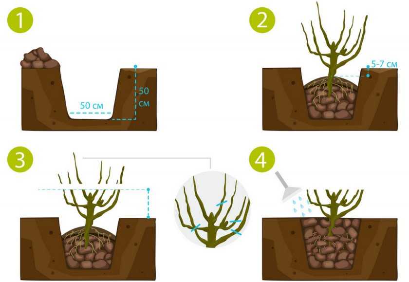 Стоит обратить внимание, что корневая шейка после посадки должна оставаться на высоте 3 см над уровнем почвы. В конце растение поливают 10 л воды и, когда она немного впитается, мульчируют приствольный круг опилками или хвоей.