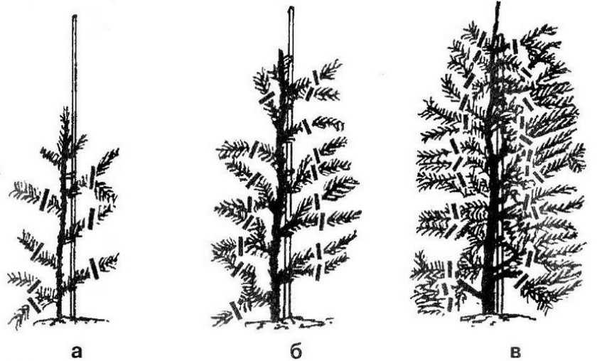 Тогда хвоя сохранится на верхнем и нижнем уровнях, закрывая стволы деревьев. При прямоугольной форме от недостатка света хвоя на нижних ветках осыплется, из-за чего изгородь потеряет свой привлекательный внешний вид и функциональность