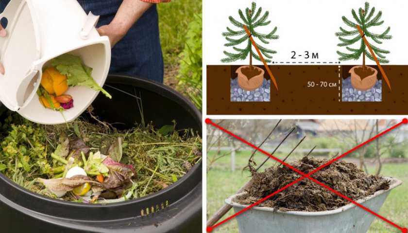 Саженцы нельзя высаживать в неподготовленную почву. Чтобы деревца прижились, землю для них надо подготовить, подкормив минеральными удобрениями с минимальным количеством азота. Чтобы ели оставались вечнозелёными, их нельзя подкармливать навозом. Для хорошего роста деревьев используйте компост или биогумус.