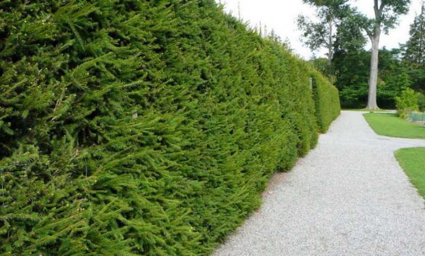 Важно! Лучшим вариантом для зелёной изгороди является обычная ель. Она неприхотлива к выбору почвы, не боится сильных морозов и растёт быстрее