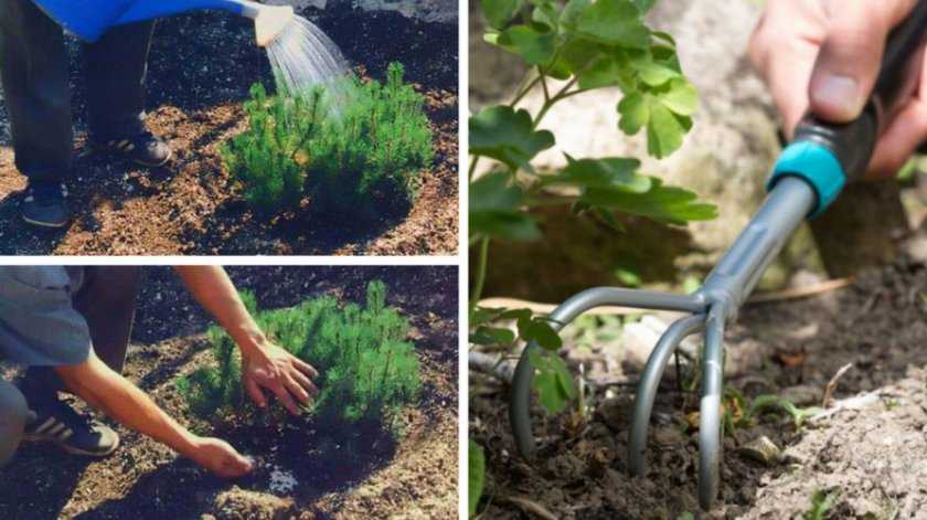 После полива землю взрыхляют, чтобы лучше сохранить влагу и обеспечить приток воздуха к корням. Неокрепшим молодым посадкам необходима подкормка. Первые три года в тёплый период надо раза четыре подкармливать их минеральными удобрениями.
