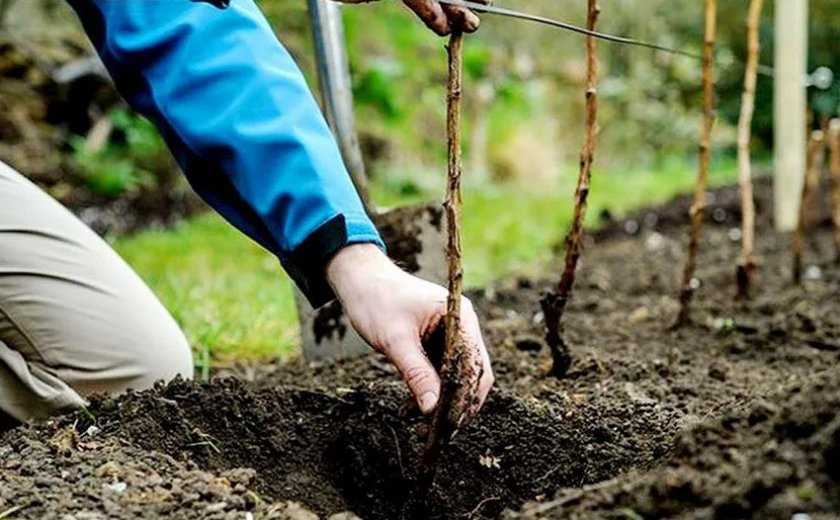 Посадка черенков происходит в весеннее время (в конце апреля – начале мая) при температуре не ниже +15℃. Для этого выбирают солнечную сторону участка. Понадобится большое количество света, чтобы ягоды успели созреть до холодов.