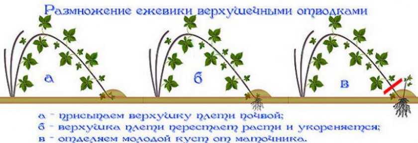 Можно использовать верхушечные побеги, чтобы размножить культуру. Для этого выбранный побег наклоняется к земле и прикапывается. Причём кончик нужно обрезать.
