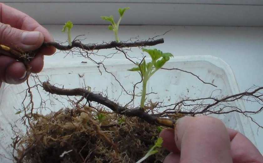 - Разделить его на куски так, чтобы осталось не менее 60 см длины корневой системы основного куста. Толщина черенков должна быть более 0,5 см, а длина — более 10 см.