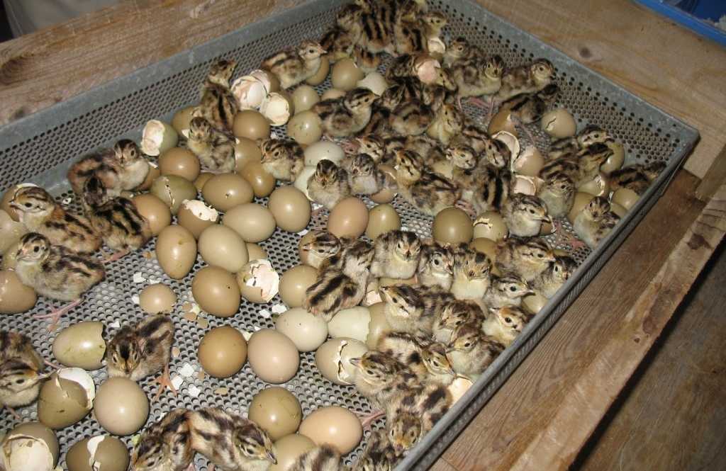 Вылупившихся птенцов содержат в клетках при температуре 28С. Выгул начинается только с 3 недель при 20С. На 1 кв.м клетки не должно приходится больше 30 птенцов, иначе будет давка.