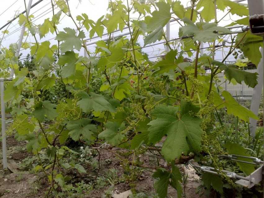 Меньше места занимают виноградные кусты, которые формировались по типу рукава. На одной ветви формируются лозы, которые будут плодоносить