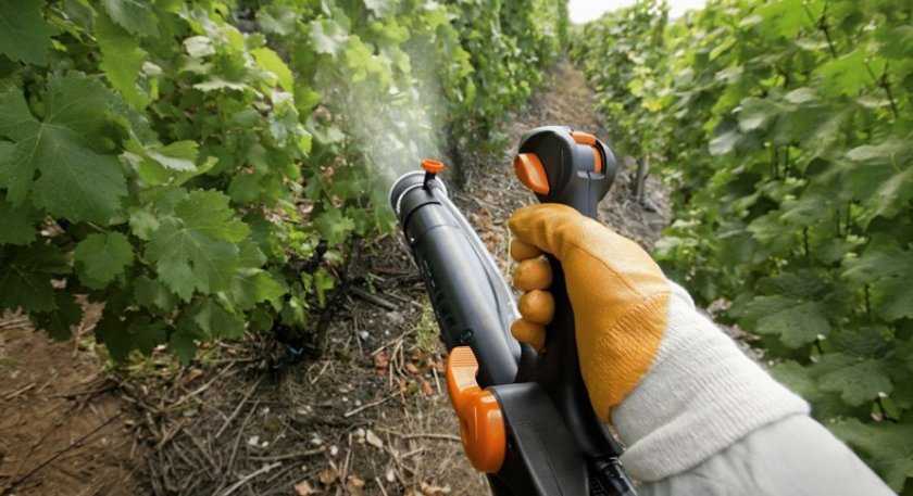 После обработки ран виноградник должен пройти опрыскивание против насекомых-паразитов, особенно виноградного зудня (войлочного клеща), а также против грибковых заболеваний (пятнистого антракноза, белой и серой гнили). Для обработки кустов используйте химические и биологические средства (например, «Бордо», «Фитоспорин», «Триходермин», «Гамаир», «Глиокладин», «Оксихом», «Актеллик»).
